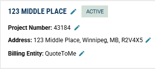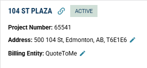- For integrated projects (indicated by the link icon), only the address and billing entity fields are able to be edited. The project name & number can only be changed in the integrating software.